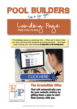 - Be seen as a leading professional in the areas you service, offering complimentary pool plans to the people in your area will make you the Nº 1 search in a very short time.