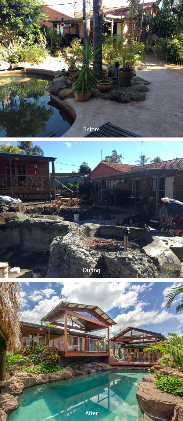 BUILDER'S COMMENTS: “When I first met Peter & Caz, all they wanted was a new ensuite and their garage demolished and rebuilt. They had been burnt by a previous contractor, but once they had tested our quality and service we ended up renovating most of the home including a new kitchen and remodelling the pool area complete with new decks and covered areas so they could entertain their many friends. We had an absolute ball creating their new environment and we remain good friends to this day.”